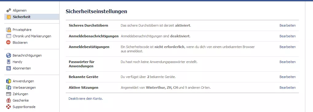 Sie können ganz schnell überprüfen ob Sie diese aktiviert haben, im Browserfenster steht dann zuerst https://www.facebook.com und nicht nur http://www.facebook.com.