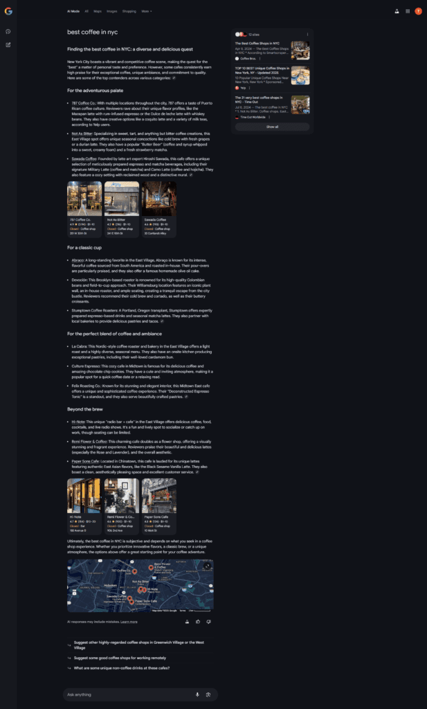Hier einige Screenshots wie der AI-Mode von Google aussieht, dieser ist in der Schweiz noch nicht verfügbar: