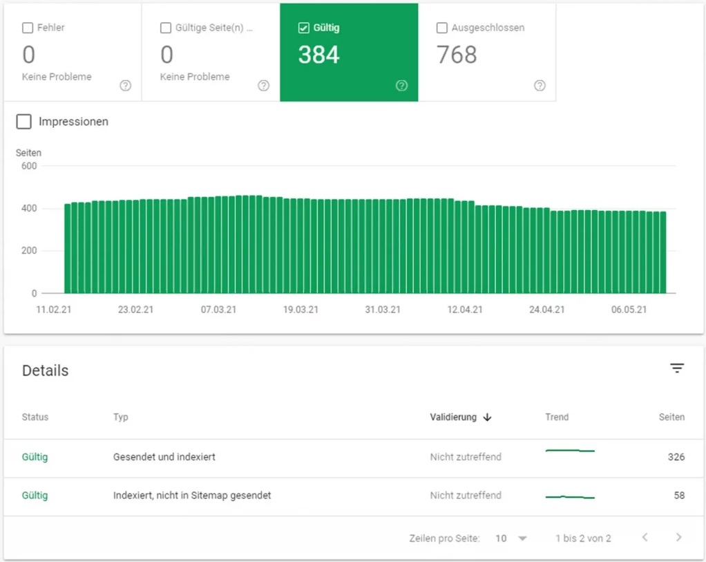 - Indizierung (wird Deine Seite von Google sauber indexiert)?